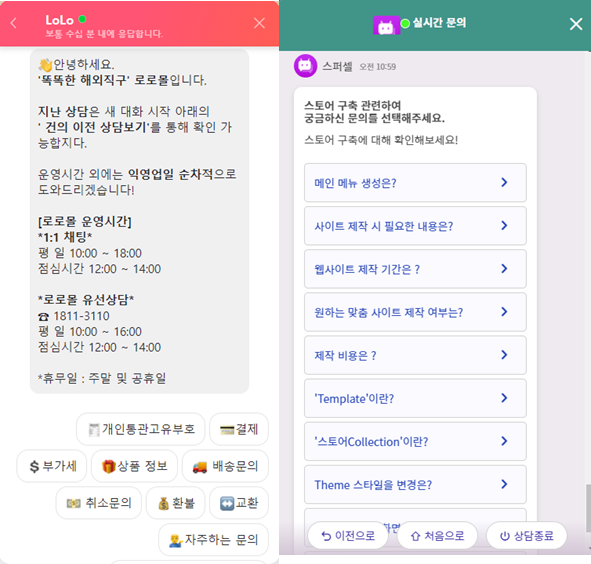 유선, 채팅, 자동화 챗봇, 카카오톡, 메일 등 다양한 채널로 상담이 가능합니다.